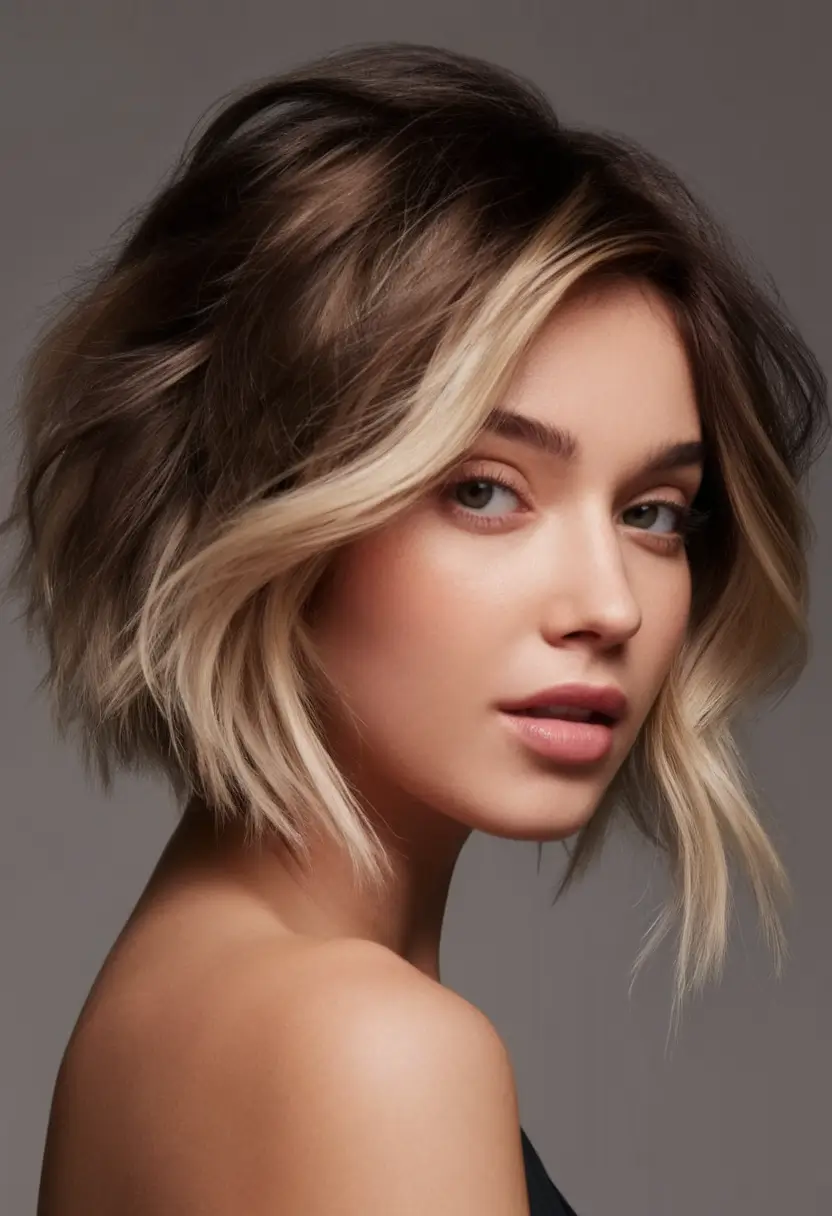 With the beach in mind, this stunning summer and 2025 hairstyle: lob, turns heads due to honey-streaked highlights swept into soft, wavy locks. This is a rounded bob which rests just beneath the chin; the soft blowing curls draw motion and volume while serving as a flattering touch a round face would appreciate. The look is fresh and summery at heart. The color balance here is splendid: there are deep golden hues alongside the roots, reminiscent of a sunlit bronzed glow that is custom-made for long summer evenings, transitioning glassy summer evenings into lovely summer nights.