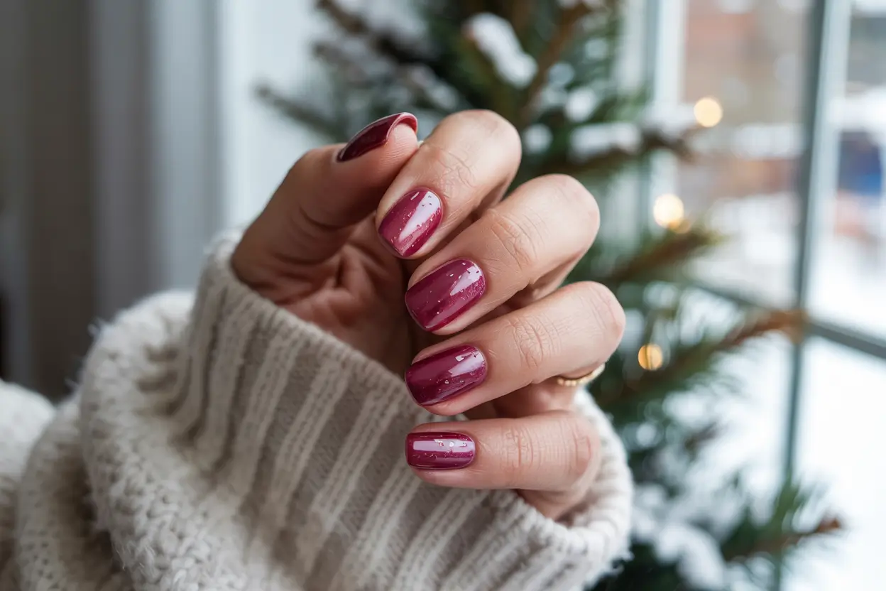 To recreate this, I used OPI’s “Malaga Wine” for the base and Essie’s “Penny Talk” for the sparkle — a timeless duo that complements every skin tone. I always finish with a high-gloss top coat; it makes the colors pop like polished glass.