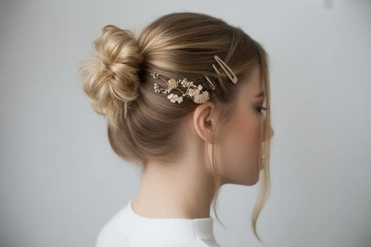 This top knot feels relaxed rather than rigid, with soft strands left out around the face. It’s a perfect Medium hair up easy option when time is short but you still want intention.
