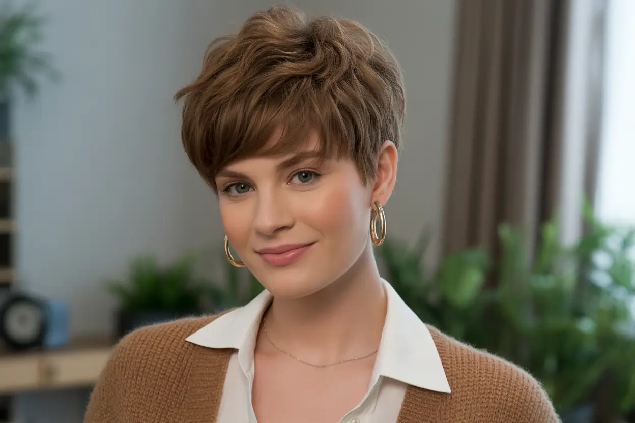 I see a pixie that leans into choppy layers without looking overdone, letting the hair fall naturally with just enough lift at the crown. The length is kept short, but not severe, and the layering creates that breezy, lived-in look that defines cute messy pixie styles 2026. What I love most is how the fringe melts into the rest of the cut, adding softness around the face without turning into heavy bangs. This kind of pixie works beautifully for older women who want movement without losing structure.
