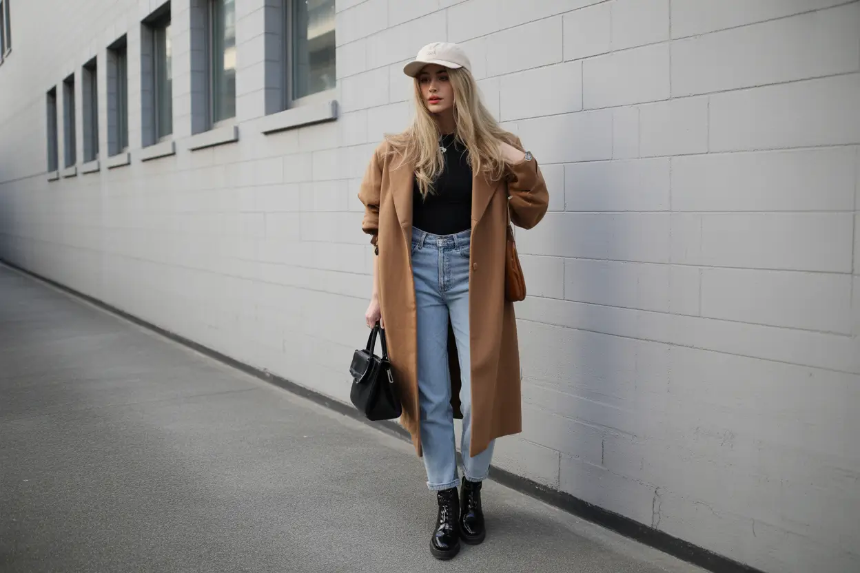The beauty here is in the details. The structured coat, slim boots, and neutral palette make this outfit incredibly wearable. It’s one of those looks that doesn’t demand attention, yet always looks intentional.