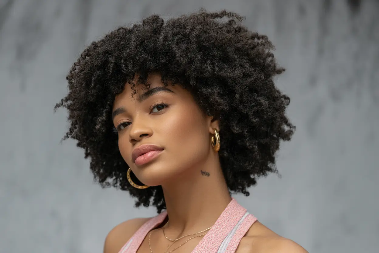 This rounded bob celebrates curl pattern without forcing definition. The curls sit naturally, forming a balanced shape that frames the face beautifully. It’s a confident hairstyle black women natural hair moment that feels honest and wearable.