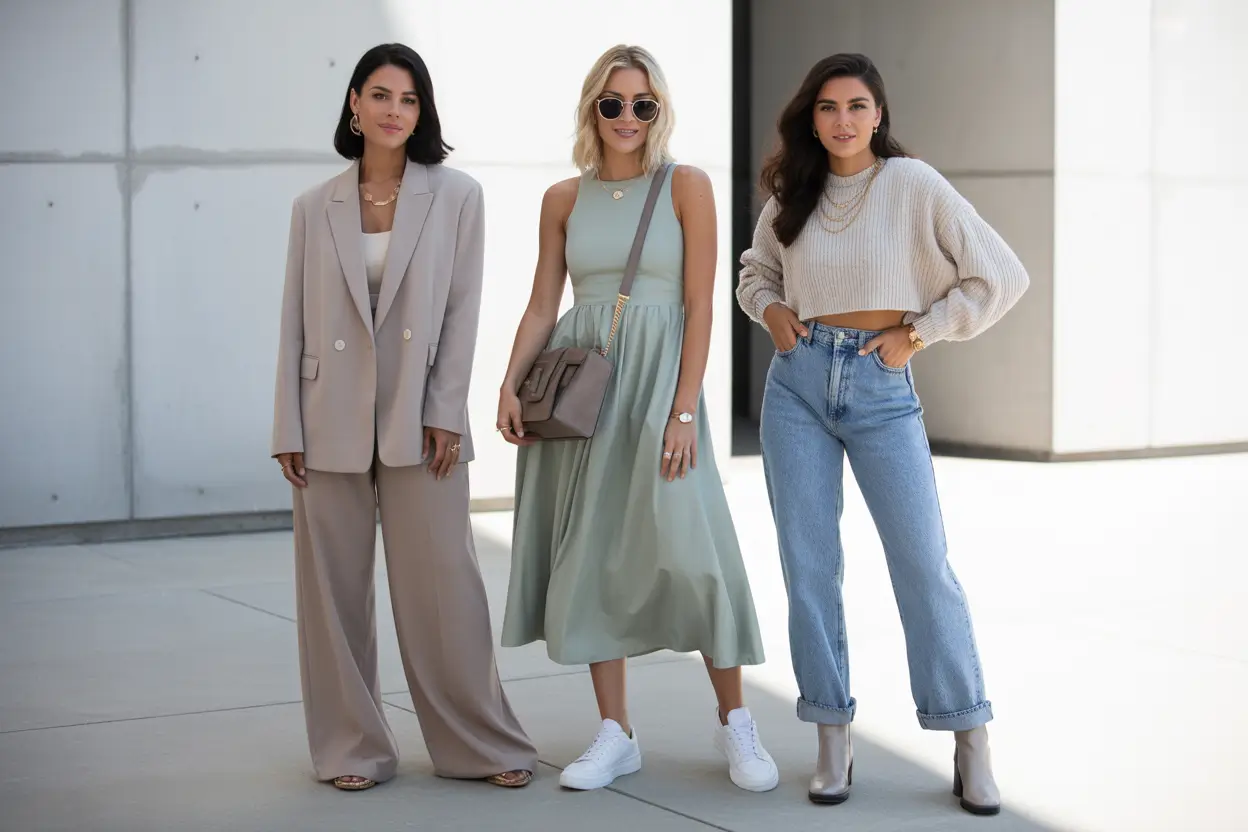 I also appreciate the way it is leaning towards a low-key Colorful palette without being bright or overwhelming. Sage is a nice transition color in case you are tired of staying grey but you want to remain neutral. One minor adjustment like changing sneakers to either soft Blue or blush would make the mood change immediately with the same base pieces.
