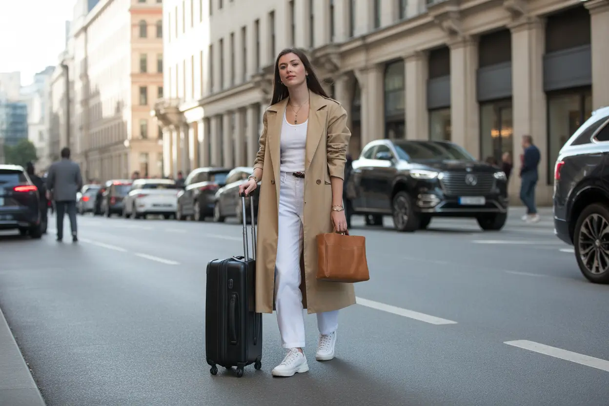 On occasions when I am making a direct trip to the gate to a meeting or a fancy hotel lobby, I rely on sporty tailoring. An oversized blazer in a light neutral immediately dresses up the most casual outfits, particularly when worn with a pair of light white joggers and a plain tee. A baseball cap, slim sneakers, and a structured tan handbag add all that makes you have a look that is both athleisure and business casual. It is an ideal case of travel outfits for women airport that can easily be converted to city mode, be it landing in Italy, Spain, or even travelling even farther east after a stopover in Europe.